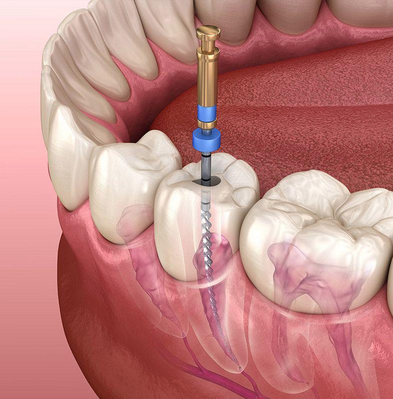 Tratamentul de canal, sau „scoaterea nervului”, permite salvarea unui dinte natural care altfel ar trebui extras. Procedura se realizează numai sub anestezie, fiind complet nedureroasă.